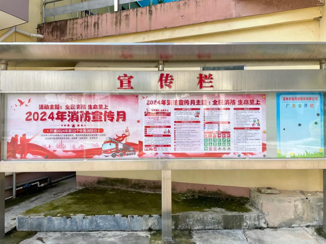 2024年11月9日是第33個“全國消防日”,11月也是全國第八個“消防宣傳月”,今年的主題為“全民消防、生命至上”。水仙藥業(yè)圍繞安全宣傳月主題開展了系列活動,具體活動如下: