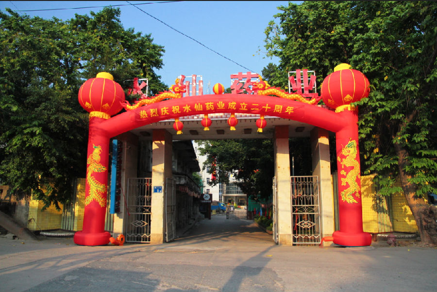 二十周年慶來臨前,公司以簡約為原則,以宣傳、渲染氛圍為目的,精心策劃廠慶布置方案:在外大門設(shè)大型雙柱拱門,橫幅上寫著“熱烈慶祝水仙藥業(yè)成立二十周年”,在內(nèi)大門門崗兩側(cè)各擺放5個(gè)花籃,道路兩旁擺滿鮮花,迎風(fēng)招展。辦公大樓正面縱向掛著一幅寫著“熱烈慶祝水仙藥業(yè)成立二十周年”的巨型紅布條,并且在辦公樓各樓層、舊科技樓、車間大樓等處裝扮紅布條,上面各式各樣的祝詞,映襯得公司格外喜慶。廠區(qū)中心的水池臺階擺滿鮮花,道路兩旁插滿彩旗,用心的布置使公司環(huán)境煥然一新,充滿喜慶的氛圍。