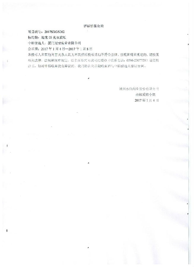 水仙評(píng)標(biāo)公示結(jié)果